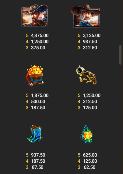 สัญลักษณ์ และ LINE เกม Gold Rush Cowboys ค่ายสล็อต FASTSPIN เว็บตรง