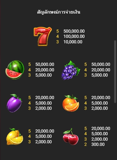 Mighty Sevens เป็นเกมสล็อตที่มีธีมเกี่ยวกับผลไม้คลาสสิกแลไอคอนต่างๆ ที่คุ้นเคยจากเครื่องสล็อตแบบดั้งเดิม อย่างเช่น เลข 7, ผลไม้ต่างๆ และสัญลักษณ์ Wild ที่ช่วยเพิ่มโอกาสในการชนะรางวัล เกม ยูฟ่าเบท นี้มาพร้อมกับวงล้อ 5 วงล้อและจำนวนแถวที่สามารถปรับเปลี่ยนได้ ทำให้ผู้เล่นมีโอกาสในการชนะมากมายในการหมุนแต่ละครั้งไอคอนไวล์ด ในเกมนี้มีบทบาทสำคัญในการช่วยเพิ่มโอกาสในการชนะ หากคุณหมุนได้ไอคอน ไวล์ด มันจะสามารถแทนที่ไอคอนอื่นๆ ในเกมและช่วยให้คุณสร้างชุดค่าผสมที่ชนะได้มากขึ้น