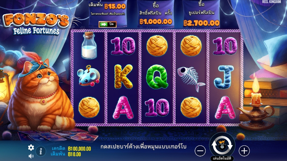 สัญลักษณ์ และ LINE เกม Fonzo’s Feline Fortunes ค่ายสล็อต PP SLOT เว็บตรง