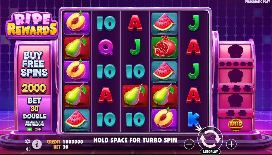 เกม Ripe Rewards จากค่าย Pragmatic Play เป็นเกมสล็อตที่มีความน่าสนใจและน่าตื่นเต้นมาก โดยมีรูปแบบการเล่นที่เป็น 5 วงล้อและ 5 แถว ผู้เล่นจะได้สัมผัสประสบการณ์การเก็บเกี่ยวผลไม้ที่เต็มไปด้วยโชคลาภและรางวัลที่มากมาย เกมนี้มาพร้อมกับกราฟิกที่สดใสและเสียงเพลงที่ดึงดูด ให้บรรยากาศที่สนุกสนานและมีชีวิตชีวา ทำให้ผู้เล่นรู้สึกเหมือนอยู่ในสวนผลไม้ที่มีความอุดมสมบูรณ์UFABET สัญลักษณ์ในเกมประกอบไปด้วยผลไม้หลากหลายชนิด เช่น ทับทิม, พลัม, อตงโฒ องุ่น และเชอร์รี่ ซึ่งมีการตั้งค่าให้แสดงผลตามลำดับที่กำหนด ผู้เล่นสามารถชนะรางวัลจากการจับคู่สัญลักษณ์ที่เหมือนกันบนเพย์ไลน์ที่กำหนดไว้ นอกจากนี้ยังมีฟีเจอร์พิเศษต่างๆ ที่จะช่วยเพิ่มโอกาสในการชนะ เช่น สัญลักษณ์ Wild ที่สามารถแทนที่สัญลักษณ์อื่นๆ ได้ รวมไปถึงฟีเจอร์ฟรีสปินที่จะทำให้ผู้เล่นมีโอกาสเพิ่มการชนะได้มากยิ่งขึ้น